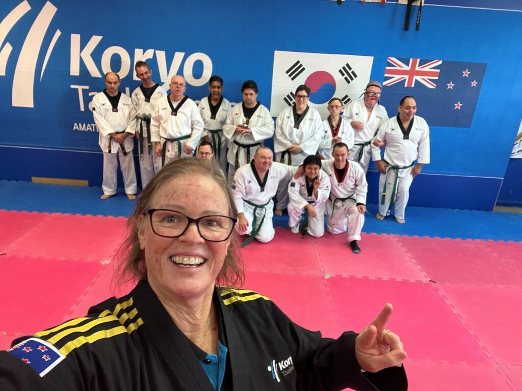 Previously leading the Bay City Club in Napier in 2020 this was later re-branded as Koryo Taekwondo Club in her native Hastings. Initially starting with just six members it has rapidly expanded to now including 160 members including 20 with a disability. Working with a range of disabilities from cerebral palsy, down syndrome, deafness, visual impairment plus a range of other disabilities is a challenge Camille has faced with relish.