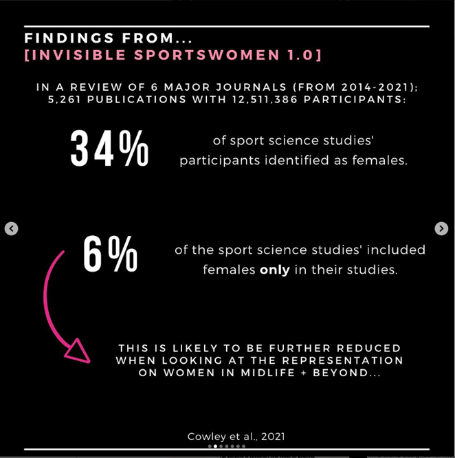 For example, in 2021, we published ‘Invisible Sportswomen’: The Sex Data Gap in Sport and Exercise Science Research, which conducted an exploration of the ratio of males and females as participants in sport and exercise science research.1