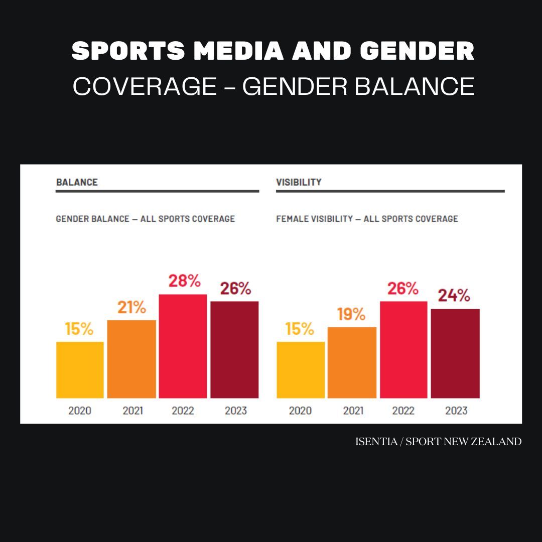 The New Zealand media landscape is undergoing significant change with a number of major newsrooms restructuring and reducing in size. TVNZ has cancelled shows and reduced news bulletins, and Warner Bros. Discovery news division - Newshub - closed in July 2024. While the gender balance of stories may not be significantly impacted by these moves, they will impact the opportunity to see women in sports news coverage, particularly on television. They will also impact the opportunities for career paths into sports journalism.