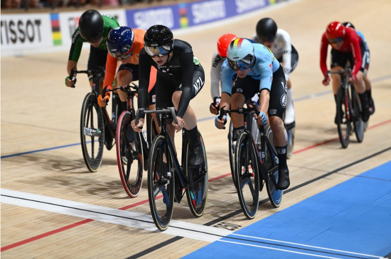 A fourth medal eluded the kiwi by countback in the 25kms points race, finishing tied for third with Ireland’s Lara Gillespie who earned the bronze medal after finishing ahead of Wollaston in the final sprint. The kiwi star was only four points from the gold medal, after being strongly marked for much of the race. She led the points for a significant time, but could not convert two impressive moves into bonus points for lapping the field, which would have secured victory.